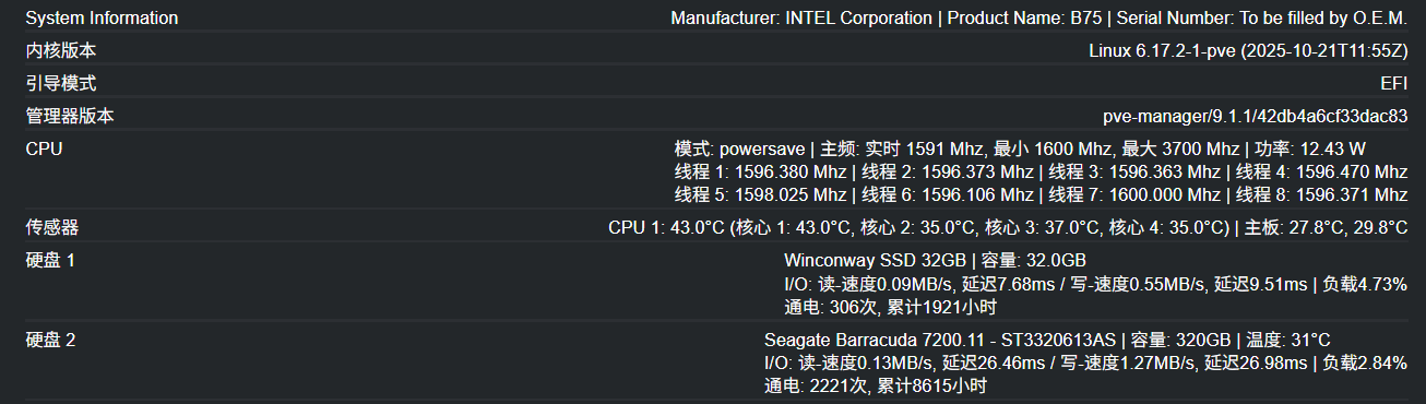 从买的那一刻起我就为他们定下了很明确的定位 E5主频低当存储 E3主频高当PVE虚拟机器出来 其实这些项目E3一个CPU就能满足 这也为后续我陷入沉思留下伏笔 在我安装冬瓜HAOS的时候 安装QEMU的步骤 使用了Qcow2的虚拟磁盘文件来安装HAOS的时候 意外出现了 PVE的UEFI报错一堆连Deepseek都造成了误解的报错信息 我没有气馁 换成了SeaBIOS 换国际版HAOS 用Windows安装... 此时我的朋友还说是不是新版的PVE9.1引入了新的安全机制所导致的 我半信半疑 最后的最后 UEFI终于爆了一个比较正常的错误 “鉴权错误” 我联想到UEFI设置EFI分区的时候的鉴权导致的 于是我重新添加了一遍 你别说 真的好了 于是我就重装了冬瓜家的HAOS 然后接入XiaomiHome和苹果桥接就那么美滋滋的用上了...